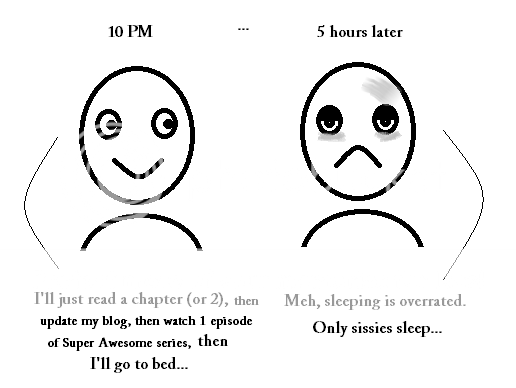 Staying up until the early hours of the morning can be fun. Really. It does not beat cavorting with unicorns and bunny rabbits in a daisy field in La La Land, but it sure does have its uses. For one, it will surely—eventually—turn you into an insomniac. “What’s great about being an insomniac?” you ask. Aside from giving you dark circles around your eyes, thereby making you look like an adorable panda (if you think pandas are adorable, that is), it will also give you a chance to whinge because you have this splitting headache and you just need to bug everyone with your complaints about it. It will also give you a valid excuse to miss work because a splitting headache, no matter what caused it, is really a valid excuse for calling in sick.